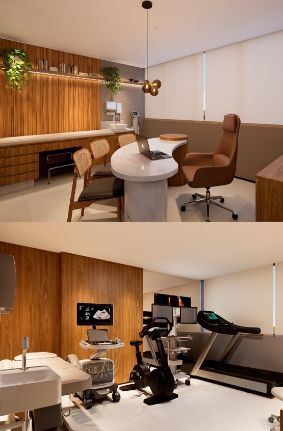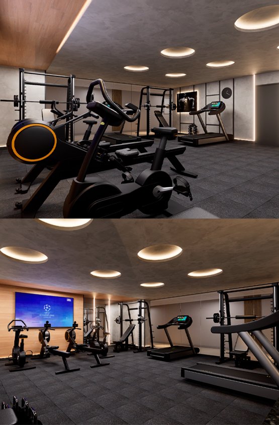 Com equipamentos de última geração e um espaço wellness, o ambiente foi planejado para entregar uma experiência completa: