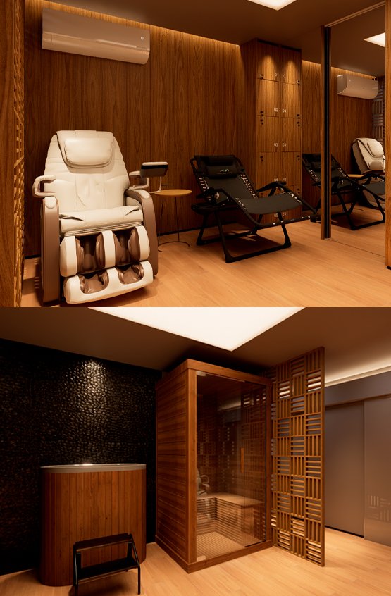 Espaço dedicado a relaxamento, recuperação e bem-estar.